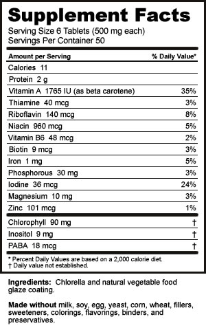 Ingredients: Chlorella and natural vegetable food glaze coating.