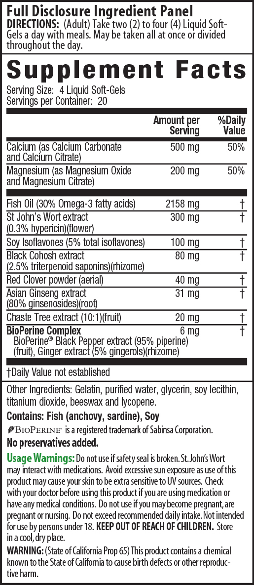 Botanicals - This multi-approach formula contains women’s health herbs, including Black Cohosh, Chasteberry and Red Clover. Ginseng has been traditionally used as a tonic to combat physical fatigue and to support cognitive function.*