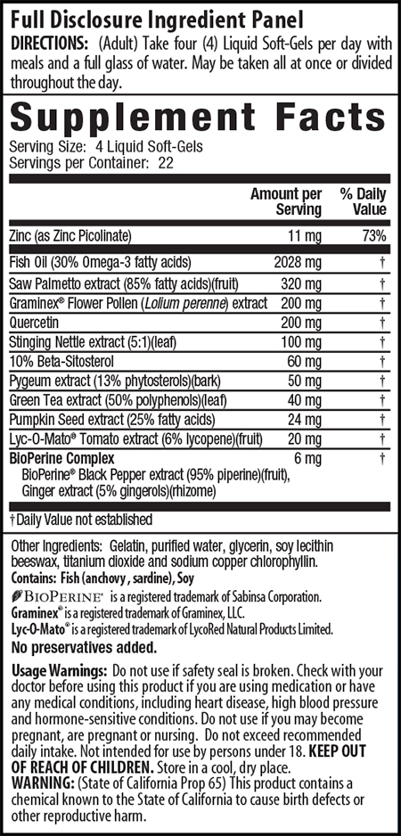 Prosta-Strong® focuses on these 3 targeted areas and combines supportive nutrients for optimal prostate health.* This advanced formula includes healthy levels of Omega-3 fatty acids from fish oil.*